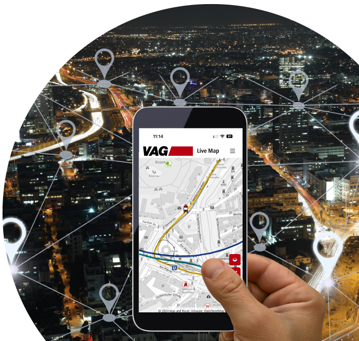 Für die VAG Verkehrs-Aktiengesellschaft Nürnberg betreiben wir eine leistungsfähige kartenbasierte Lösung auf Basis von OpenStreetMap (OSM) und stellen dafür sowohl das Kartenmaterial als auch die technische Plattform bereit. Die öffentliche Kartenseite der VAG wird durch umfangreiche POI-Daten ergänzt, die sowohl allgemeine Informationen als auch kundenspezifische Inhalte für den Verkehrs- und Betriebsalltag abbilden.